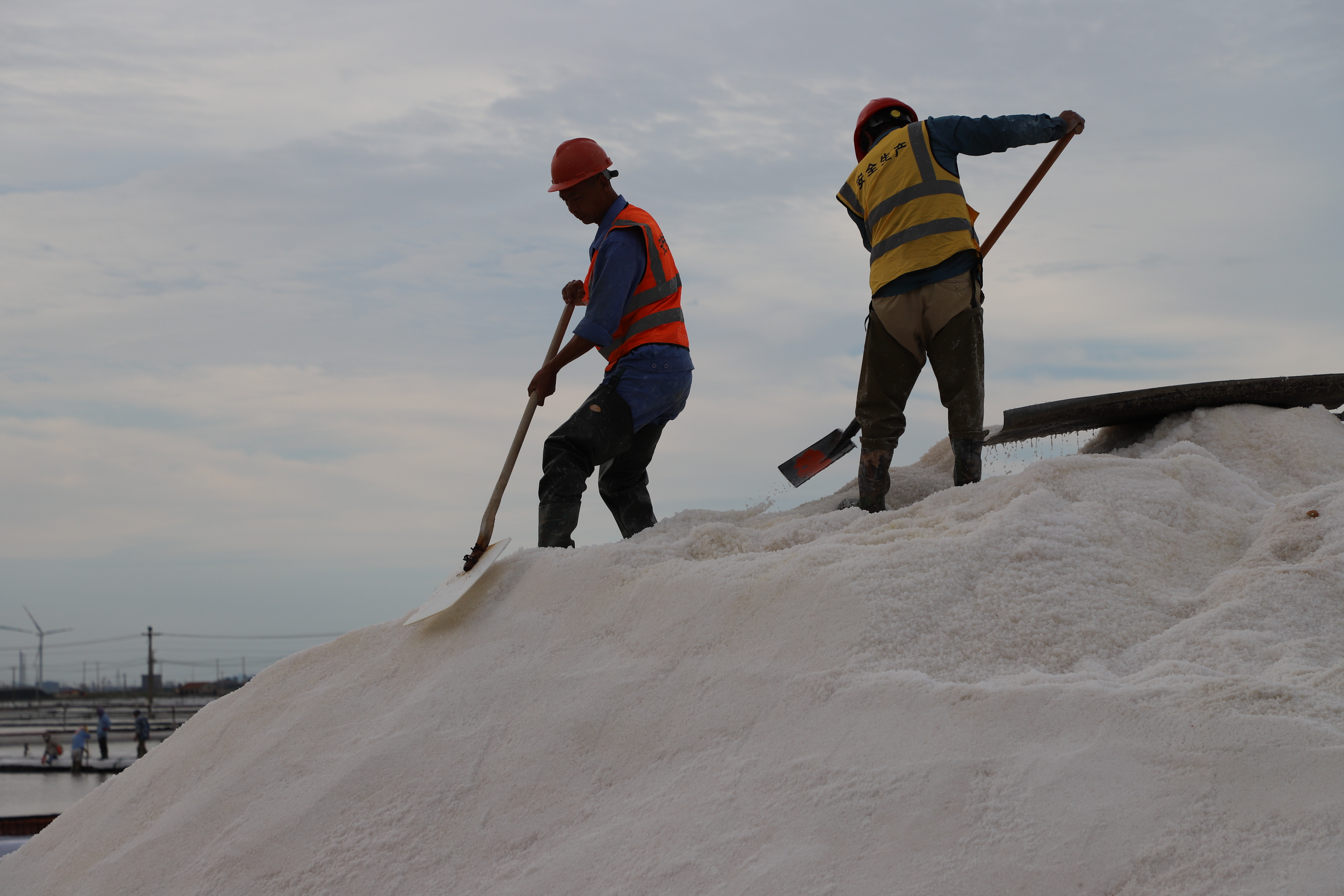 原鹽生產不松勁。每年的國慶假期總是與“秋扒”不期而遇。由于受連續的陰雨天氣影響,今年的秋扒工作一度延后。9月29日--9月30日,凌晨5點鐘,日曬鹽田的鹽圩小路像往常一樣成了一道最美的風景線,鹽工們全副武裝奔赴各自工作點位進行收拉塑布、排淡等工作。為了搶時間,抓進度,鹽工們緊鑼密鼓地忙碌起來,籌備扒鹽工作,天氣剛轉好,只見有的在整理塑布,有的破碴,10月2日,10臺扒鹽機組全部運轉起來,潔白的鹽廩逐漸擴大,節日期間將扒鹽30000余噸。