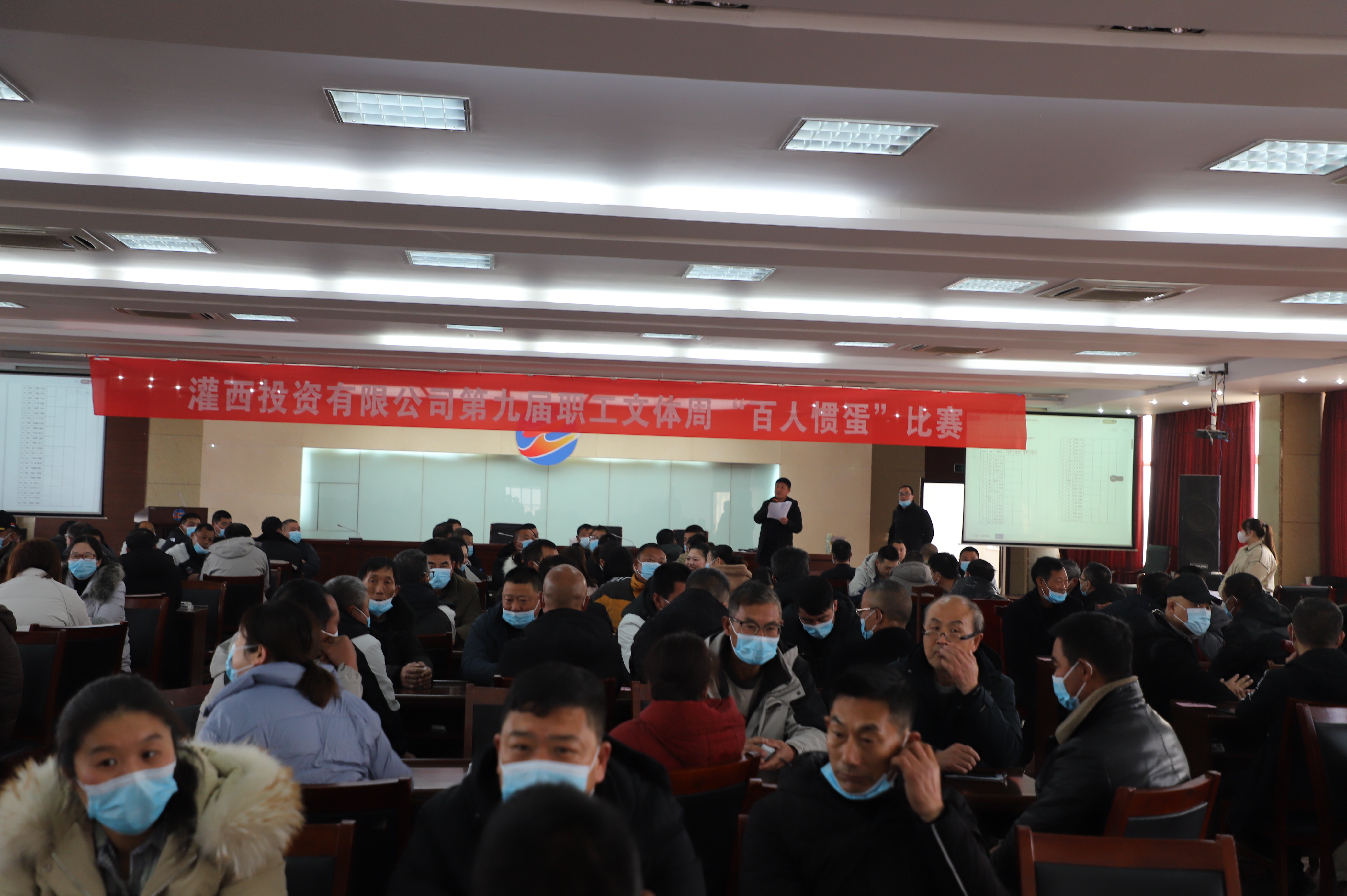 12月23日,灌西投資公司第九屆職工文體周摜蛋比賽在機關五樓進行,本次摜蛋比賽活動共計88對176名棋牌愛好者報名參加,為保證本次活動的公平公正,參賽人員采用分A、B組的方式,每個小組取前8名進入下一輪比賽;參賽選手經過3輪比賽后,獲勝的5對選手直接進入下一輪比賽,在輪空選手和5名敗方選手中取3名進入下一輪比賽,3名獲勝者進入下一輪比賽;進入16強的選手,采用抽簽方式確定比賽選手和順序,取前8名進入下一輪比賽;進入前8強的選手按對陣秩序依次決勝取出前八名;在淘汰的8名選手中按對陣秩序取出9、10名。