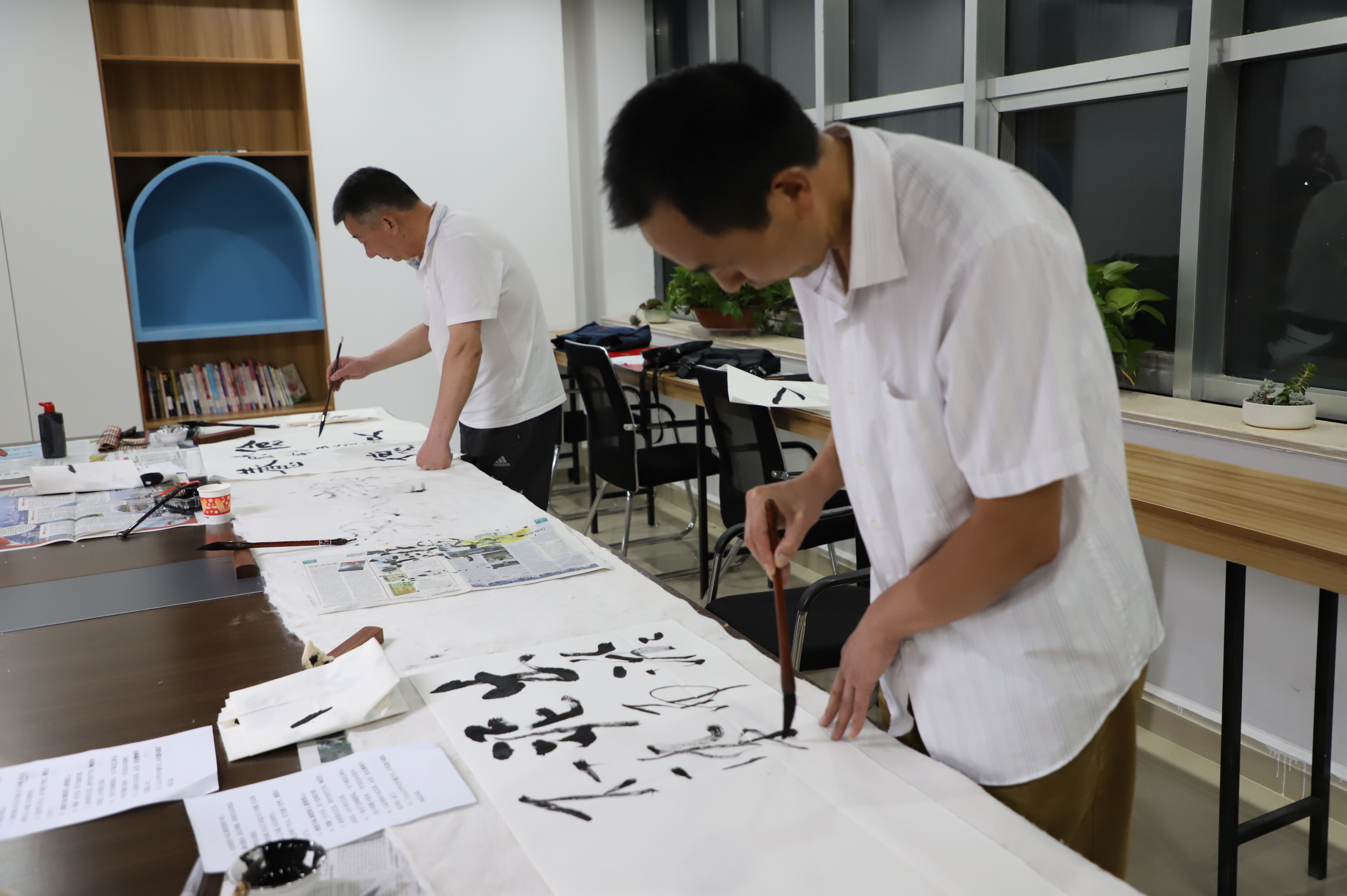書畫筆會邀請縣書畫家協會的6名成員到場潑墨揮毫,以圍繞“迎國慶慶祝建黨百年”為主題,書寫愛黨華章,歌頌黨的百年光輝歷程,著力引導黨員干部“守初心、踐使命”。