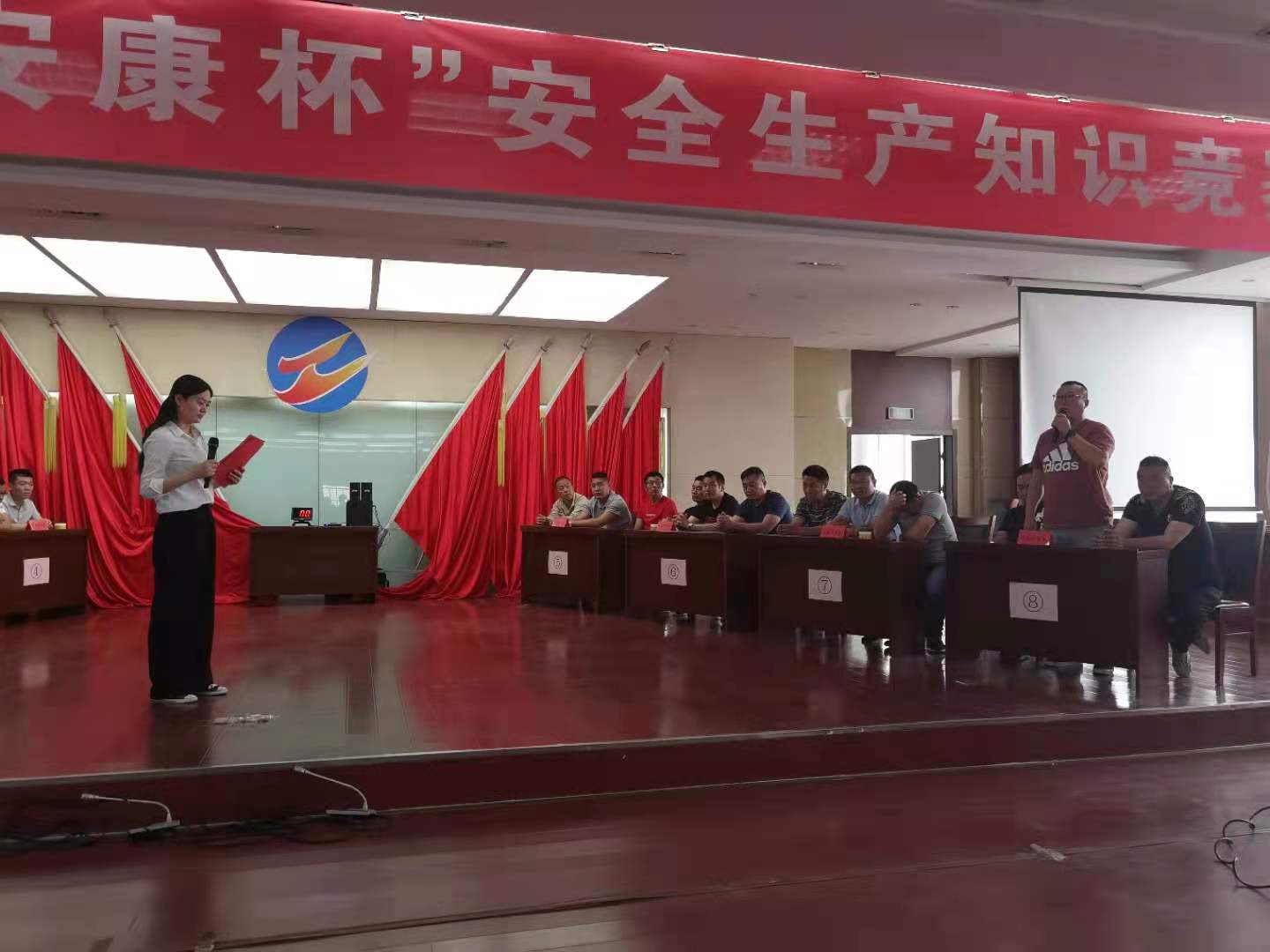 安全生產(chǎn)知識競賽活動是該公司開展的安全生產(chǎn)月活動的一部份,共有新河制鹽分公司、埒南制鹽分公司、宵洋物流公司、西旺水產(chǎn)公司、南翼綠化公司、生產(chǎn)服務公司、資源管理中心、明威農(nóng)業(yè)公司等有八支代表隊參加比賽,比賽內(nèi)容主要為安全生產(chǎn)基本常識、新《安全生產(chǎn)法》等。此次安全競賽分為必答題、搶答題和觀眾題等多種形式,整個搶答比賽過程緊張激烈,選手搶答積極,流暢作答,比分依次上升,搶答環(huán)節(jié)險情頻頻,有的代表隊搶答違規(guī)被扣分,好容易搶到的分數(shù)又被扣了,有的代表隊稍顯謹慎,很少搶到答題,但穩(wěn)打穩(wěn)扎,得分依然不低。觀眾答題環(huán)節(jié),人人舉手踴躍答題,現(xiàn)場氣氛熱烈。