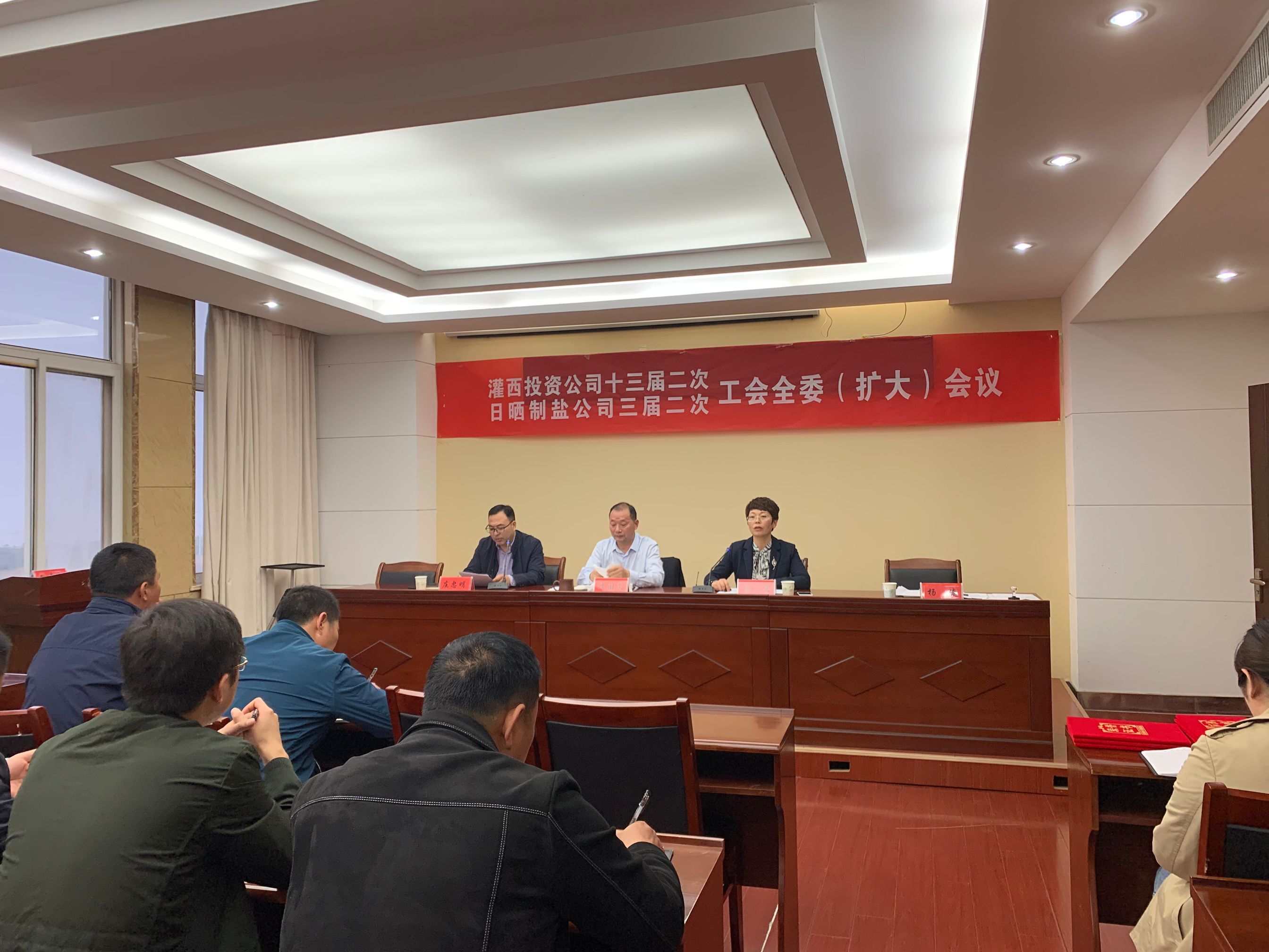 4月28日,灌西投資公司召開十三屆二次、日曬制鹽公司三屆二次工會全委擴大會議,公司黨委書記、董事長、總經(jīng)理李國文出席會議并講話,工會主席王宏作工作報告。工會委員會全體委員,各單位工會主席、女工委主任參加會議。
