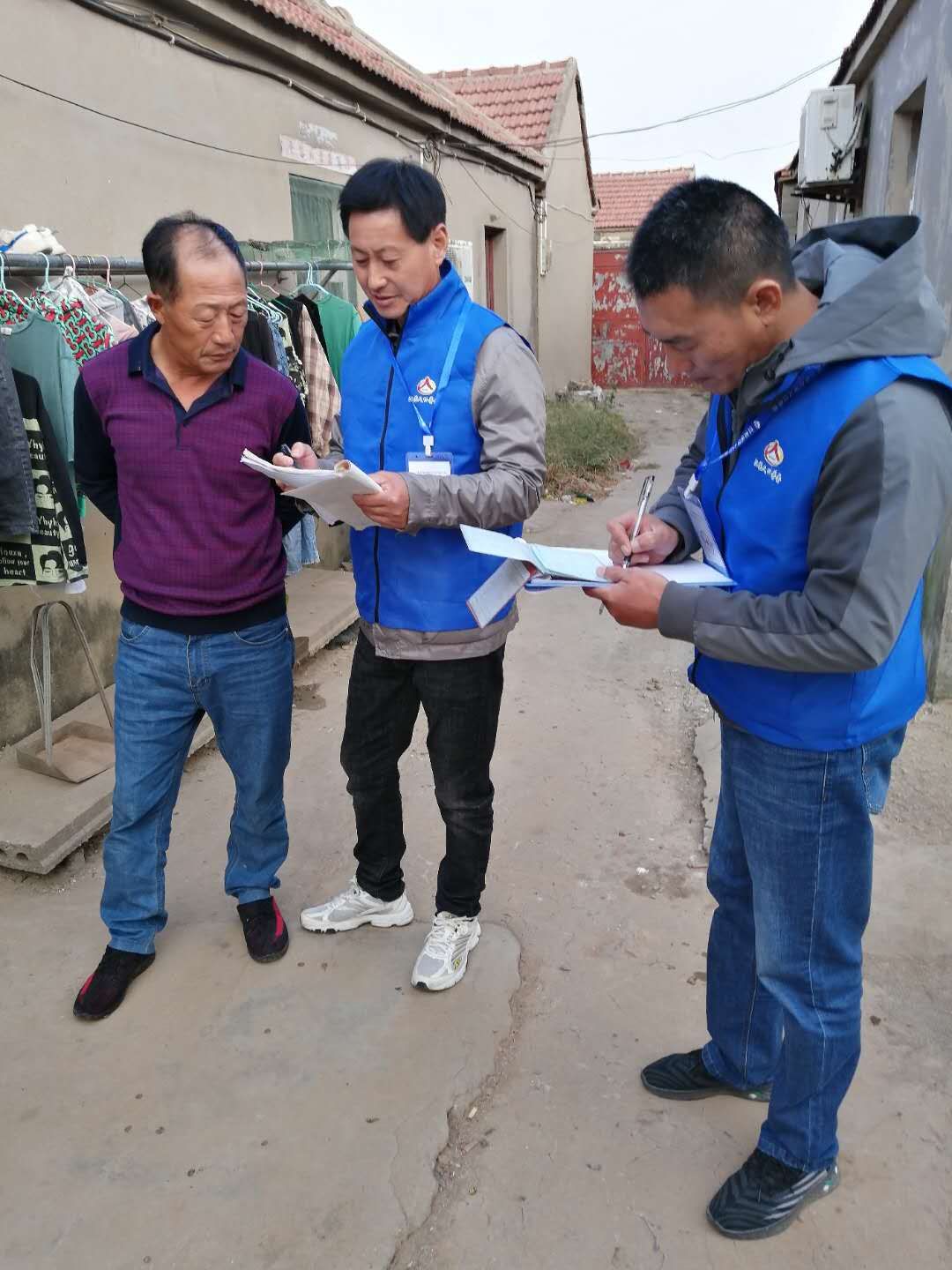 社區服務中心工作人員正在用手機上傳數據