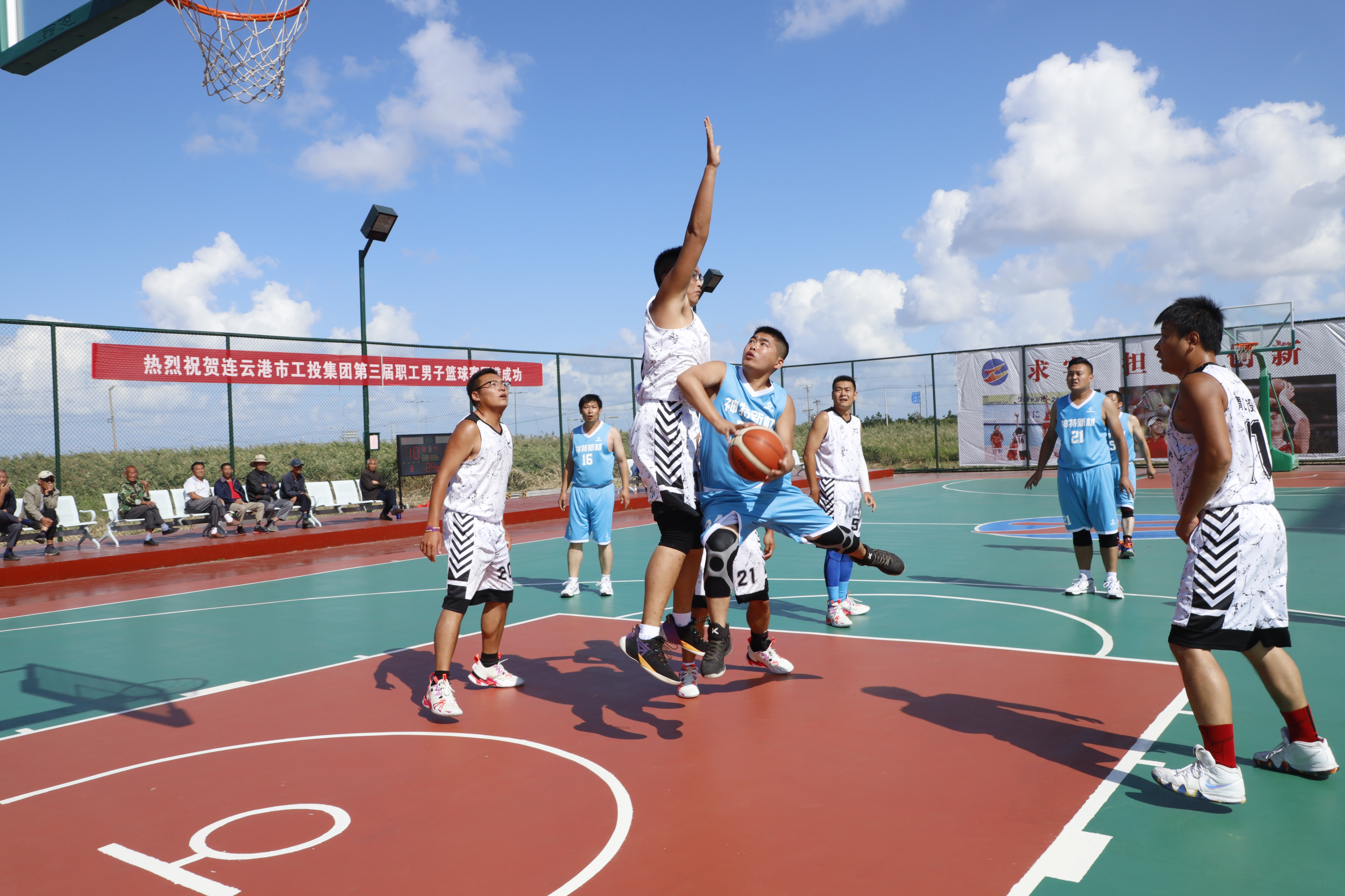 下午1:40,利海對戰金橋制鹽,此前利海比賽都取得勝利,雙方實力有差距,開場首節,利海充分利用快攻優勢,3步上籃屢屢得分;而金橋制鹽在利海的嚴密防控下,得分機會較少;利海6號突破分球給8號投籃,球進,以15:5結束第一節;第二節,雙方打的比較膠著,利海3號強打籃下得分,6號與10號配合打進一球;而金橋制鹽,在利海的防守之下,屢次出現失誤,投籃命中率下降,這節只得了2分,以23:7結束上半場;下半場,利海完全控制了比賽節奏,雙方比分進一步拉大,金橋制鹽失去扭轉比分的可能,比賽進入一邊倒的局面,利海以59:27輕松拿下比賽。(靳靜)