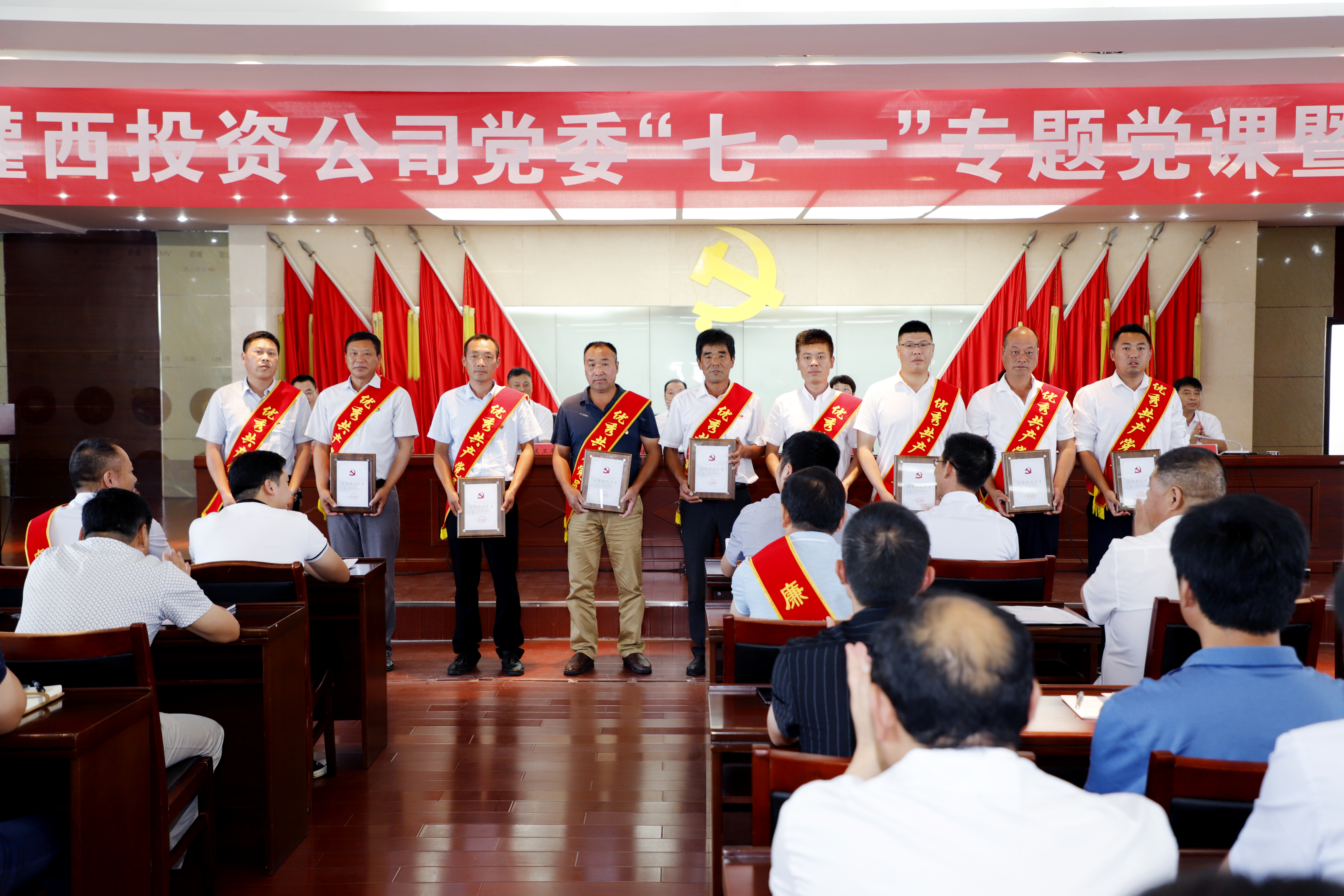 會議在莊嚴肅穆的國歌聲中拉開帷幕,新黨員在黨旗面前進行了宣誓。會上,常務副總經理吳衛平宣讀了關于表彰先進黨支部、優秀黨務工作者、優秀共產黨員等先進集體和個人的決定,紀委書記朱文海宣讀了關于表彰2019年度“廉潔之星”的決定,會議對獲獎個人及單位進行頒獎。
