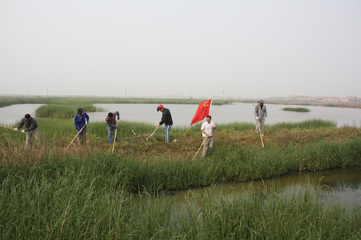 早上7點,各單位黨員職工們就已經集合完畢,新河、埒南兩個制鹽分公司的職工們更是早在清晨5點多就開始清掃責任區衛生。在勞動現場,黨員職工們揮舞著攜帶的鐵鍬,耙子,鐮刀等工具,按照分配好的片區,在整個中二圩地區展開了衛生大治理工作。他們有的在清理排水溝渠,有的在進行除草,有的在為居民清理下水道,整個大行動現場一片熱熱鬧鬧的繁忙景象。機電服務公司負責的片區內,黨員職工們或是手持撬棍掀開下水道蓋板,或是拿著鐵鍬清理排水溝道;實業公司和宵洋物流公司負責片區內,黨員職工不顧池塘內的異味,奮不顧身的撐著木筏進行清理;已到耄耋之齡的退休老黨員劉保花奶奶,也揮舞起鐵锨,加入到清除隊伍中來……一幕幕感人的場景,鼓舞著黨員職工們的干勁。通過一上午的活動,中二圩的溝道疏通了,路面也更加整潔了。