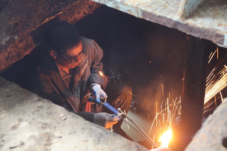 據了解,由于年久失修,柴門小工業園內五萬平米標準廠房有部分已經銹蝕損壞,特別是進入雨季以來,臺風、大雨等天氣使破損的標準廠房逐步成為安全隱患。為了消除隱患,保證生產安全,連日來,機電服務公司組織職工對破損的廠房進行維修。雖然是在室內,避免了太陽的直接烘烤,但汗水還是掛滿了工人們的臉頰。尤其是在進行焊接的時候,焊接處產生的高溫加上原本就炎熱的氣溫,給工人們帶來了身體與心理的雙重“烤驗”。據介紹,為了最大限度的避開高溫時段,該公司根據工作實際情況情況合理調整工作時間,確保職工時刻以良好的工作狀態投入到工作中,盡快完成廠房維修工作。與此同時,該公司還組織人員對六圩閘損壞的水泵進行維修,保證在極端氣象條件下,場區內積水及時抽排,確保居民財產及生產安全。(封楊)