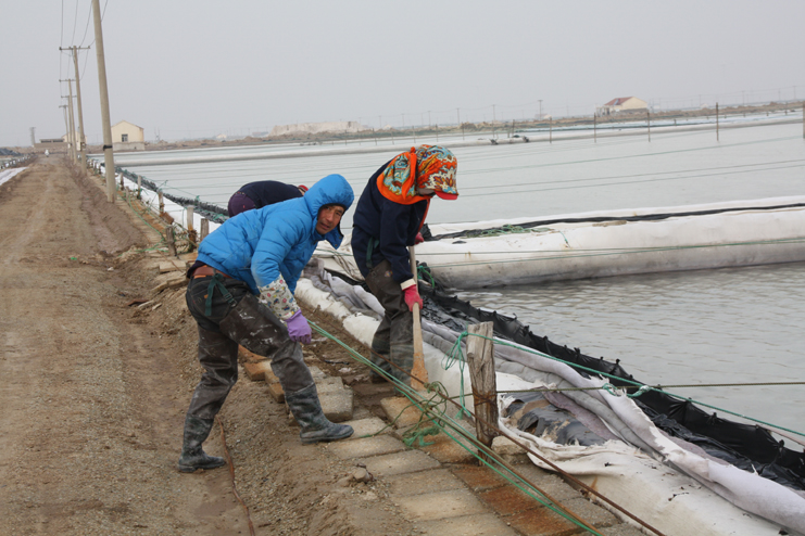2月6日上午,在新河制鹽分公司的九班,我們看到工人們正在下馬格內(nèi)和格,為盡快灌池生產(chǎn)打好基礎(chǔ),在十班,工人有的正在清除硫酸鈣,有的修整結(jié)晶池埝,而在八班的灘頭,一臺挖掘機正在鹽廩上裝鹽銷售,日曬制鹽公司廣大員工掀起春季生產(chǎn)熱潮,處處都是忙碌景象。據(jù)了解,隨著市場回暖,日曬制鹽公司的原鹽銷售較前兩年同期無論是在數(shù)量上,還是在價格上都有所增長。為了抓住這一難得的銷售機遇,不斷擴大市場占有率,公司計劃組織兩個制鹽分公司在近期開展扒鹽工作,以確保原鹽銷售工作不中斷。為此,各生產(chǎn)單位緊緊圍繞這一工作重心,在抓好日常生產(chǎn)的同時,精心做好扒鹽前的各項準備工作,努力確保扒鹽工作正常有序開展。與此同時,部分尚不具備扒鹽條件的班組則抓緊時間做好除硫池清理、撤格池板的整平以及土工布更換等工作,為春季生產(chǎn)做好各項準備工作。(封楊)