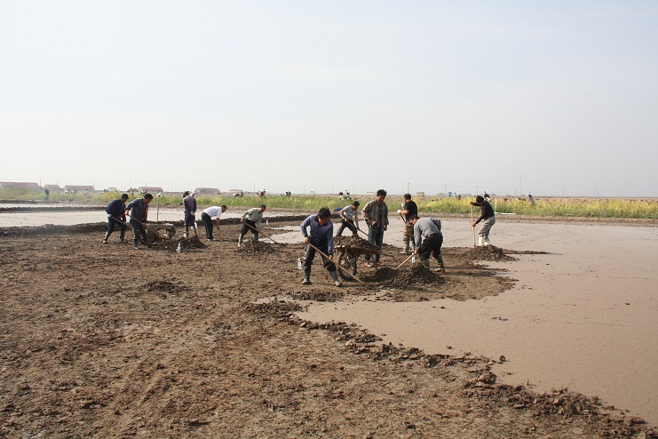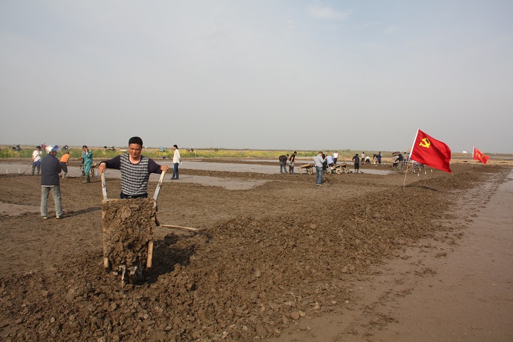 據(jù)了解,《淮鹽制作技藝》已于2015年成功申報國家級非物質(zhì)文化遺產(chǎn)保護項目并審核通過。此次央視攝制組主要圍繞淮鹽發(fā)展歷史來我公司拍攝平面灘、對口灘等制鹽工藝及過程,為制作淮鹽文化宣傳片收集影像資料。埒南制鹽分公司黨支部在接到通知后,高度重視此項工作,迅速組織黨員職工及有經(jīng)驗的班組長投入到灘地改造工作中來,為確保此次拍攝工作順利進行奠定了扎實的基礎(chǔ)。活動現(xiàn)場,大家按照事先劃分好的區(qū)域分工協(xié)作,互相配合,有鏟泥的,有利用獨輪車推泥的,不一會功夫就完成了四條池埝的制作。據(jù)“淮鹽文化傳承人”韓井軍介紹,下一步在平面灘制作完成后,再對格塊進行晾曬、“三嗆四壓”等工序后才能投入使用。(封楊)