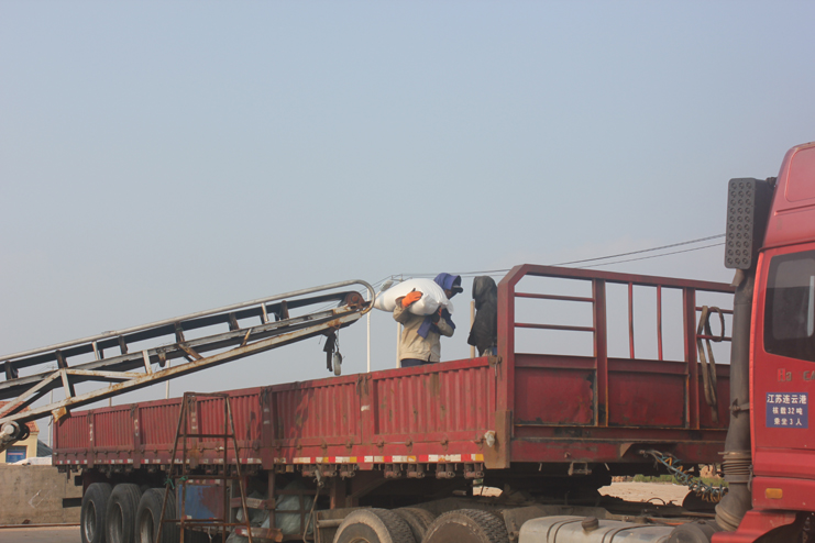 最后我們來到了筑包基地,流水線上工人分工明確,有的負責(zé)裝袋,有的負責(zé)封口,有的負責(zé)將其放上傳送帶。傳送帶的另一端,兩名工人站在貨車上,輪流將傳送上來的鹽包整齊的擺放在車廂里。