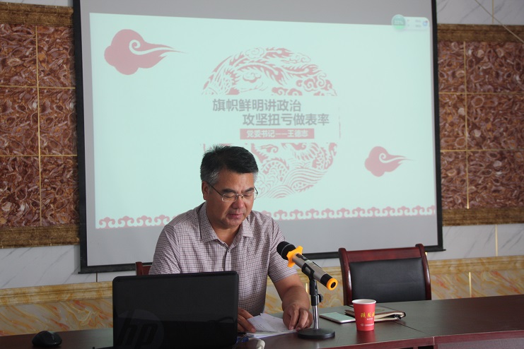 7月20日下午,投資公司黨委書記、董事長王德志圍繞“旗幟鮮明講政·攻堅扭虧做表率”這個主題,在生產服務公司會議室為日曬制鹽片區黨員干部上專題黨課,強調各級黨組織和廣大黨員干部要全面落實省市委最新部署要求,切實增強旗幟鮮明講政治的思想自覺和行動自覺。