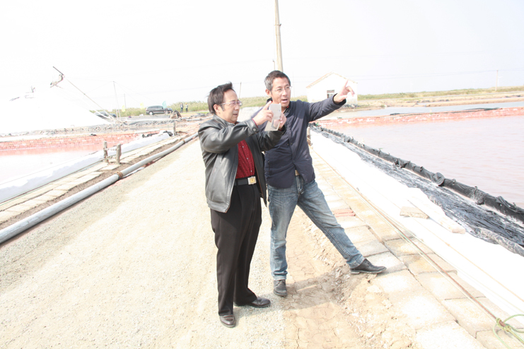 在埒南四班的扒鹽生產現場,結晶池內一臺扒鹽機正在緩緩集鹽,潔白的鹽廩上,兩名大廩工正在分流導鹽筑廩。王德志書記將日曬制鹽的生產工藝進行了介紹,張榮富、孫澤深一行一邊了解制鹽生產工藝,一邊用手機不斷拍照,通過現場采風,對現代的鹽業生產場景有了直觀地了解。孫澤深表示,作為一名土生土長的灌云作家,對鹽業生產還不是十分了解,通過參觀,對這樣的鹽業生產場面感到十分振撼,將會把鹽場的生產生活場面寫進下一步的創作中去。據了解,孫澤深,筆名郁夫,灌云人,是連云港市作家協會會員,曾任江蘇省崗埠有線廣播電視臺臺長、中國中央電視臺九洲國際傳媒副總裁等職。著作有長篇小說《純真年代》、詩歌散文集《詩情夢語》等作品。(季興勝)
