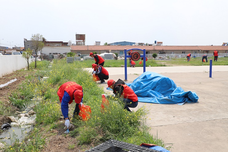 活動中,青年志愿者們頭戴小紅帽、身穿印有灌西志愿者服務隊字樣的紅色馬甲,在陽光的照耀下顯得格外醒目。參與此次活動的青年志愿者們早早的就來到了勞動現場,她們手持鐵锨等勞動工具,認真對職工文化廣場及其周邊排水溝道中的垃圾進行清理。雖然現場不時發出陣陣惡臭,但是大家依然堅持將垃圾全部清理干凈,為生活在周邊和早晚在此鍛煉的居民營造一個干凈、整潔的居住環境。