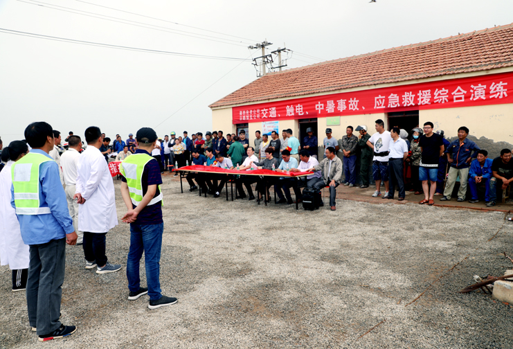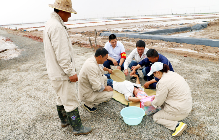 此次演練過程中,安全監(jiān)管部李長軍主持了這次演練活動(dòng),埒南制鹽分公司職工及管理人員參與其中,演練模擬現(xiàn)場有三個(gè):1、職工在灘頭塑池堰上突然中暑(重度)。2、職工在廩基小鹽化鹵調(diào)鹵中接觸老化線路接頭時(shí)不慎觸電(傷害較重)。3、職工在上班途中三輛電瓶車相撞(跌傷較重)。在救援過程中,大家各司其職,齊心協(xié)力,配合默契,有條不紊成功完成了此次演練活動(dòng)。通過這次應(yīng)急演練,進(jìn)一步提高了公司員工應(yīng)對緊急事件的自我保護(hù)和防衛(wèi)能力,保證員工在發(fā)生突發(fā)事件時(shí),能熟練應(yīng)對、有序救援,最大限度地減少事故帶來的損害,切實(shí)保護(hù)員工的安全。