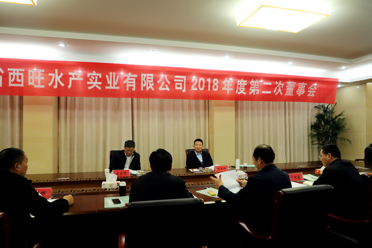 11月13日,江蘇省西旺水產實業有限公司2018年度第二次董事會在投資公司三樓會議室召開,省沿海開發集團黨委委員、副總經理周金陽,連云港市工業投資集團黨委委員、總會計師匡友本等五位董事出席了會議,會議由董事長李國文同志主持。