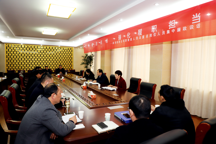 為進一步推進公司黨風廉政建設(shè),提高黨員干部廉潔自律意識,4月11日上午,灌西公司組織開展“堅守廉潔底線強化履職擔當”2019年新提拔人員及重點崗位人員集體廉政談話,黨委書記、董事長、總經(jīng)理李國文,黨委副書記、紀委書記、工會主席王宏,新提拔人員以及重點崗位人員參加了廉政談話。