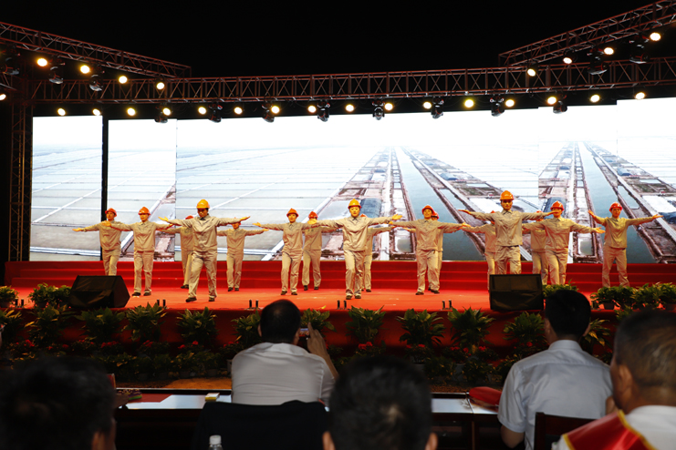 第二篇章“使命擔(dān)當(dāng)”,以廣場舞《我和我的祖國》開篇,回顧歷史,展望未來,祖國在我們心頭變得更加清晰,讓我們倍感光榮和自豪。三句半《奮進(jìn)新時(shí)代、再創(chuàng)新輝煌》回顧日曬制鹽十年發(fā)展,十年的奮斗歷程。《雜技》、小品《平安是福》以安全為主題,讓公司揚(yáng)起安全的航船,以高質(zhì)高效、創(chuàng)新創(chuàng)優(yōu)的風(fēng)帆起航。