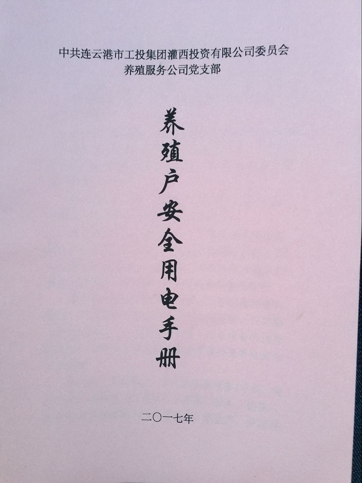 為進一步加大對養(yǎng)殖戶的安全用電教育,宣傳安全用電知識,引導養(yǎng)殖戶安全用電。近日,養(yǎng)殖服務公司黨支部編印了100本《養(yǎng)殖戶安全用電手冊》,并免費發(fā)放到養(yǎng)殖戶手中。