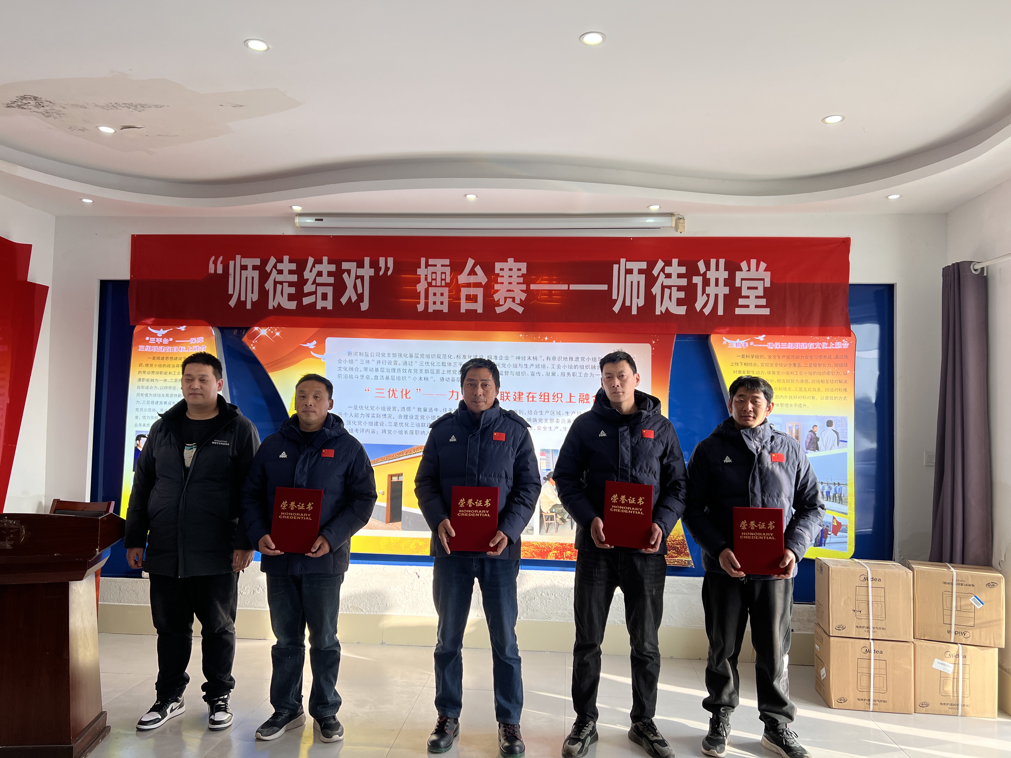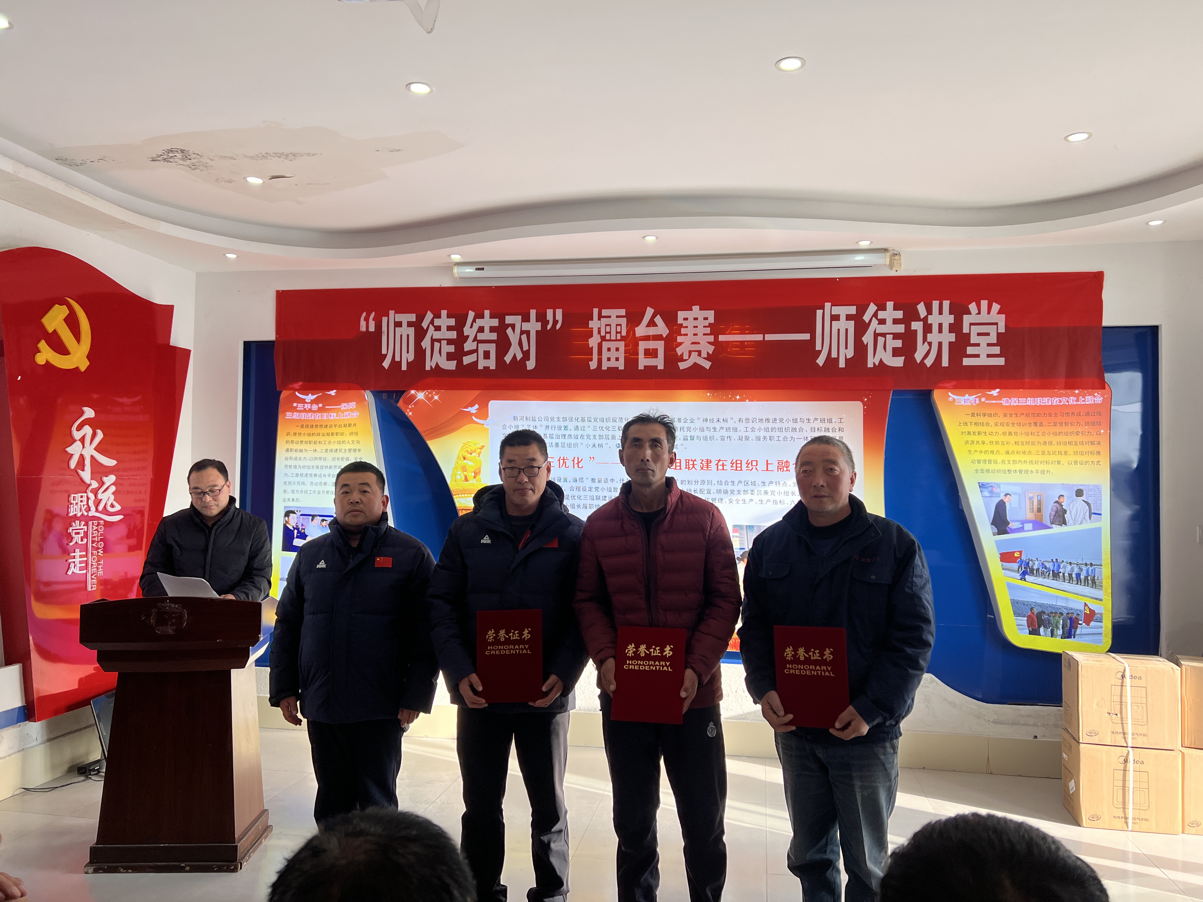 師傅教什么?“針對13班產鹽質量不足的問題,我給予了相對應的建議和指導,特別在鹵水老化過程中的一些操作,一年來,13班原鹽中硫酸根含量平均上半年0.24、下半年0.25,位列全場前茅。”