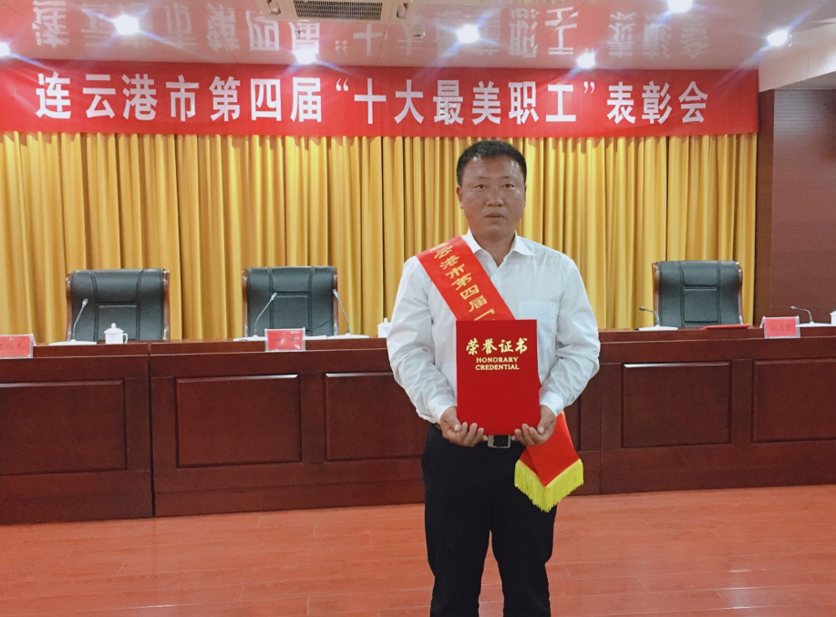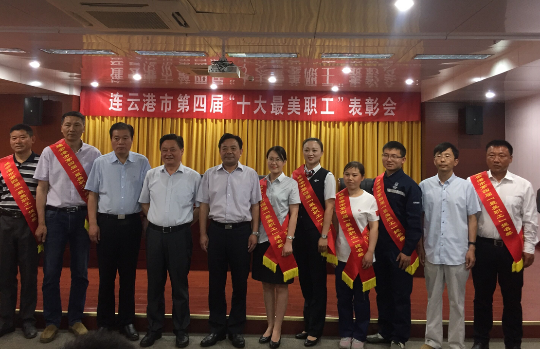 近日,在連云港市第四屆港城“十大最美職工”表彰會上,日曬制鹽新河分公司八班班長祝星星榮獲“十大最美職工”提名獎。在表彰會上,市總工會主席鄭平、丁維杰書記、宣傳部副部長李超領導與獲獎人員一起合影留念。
