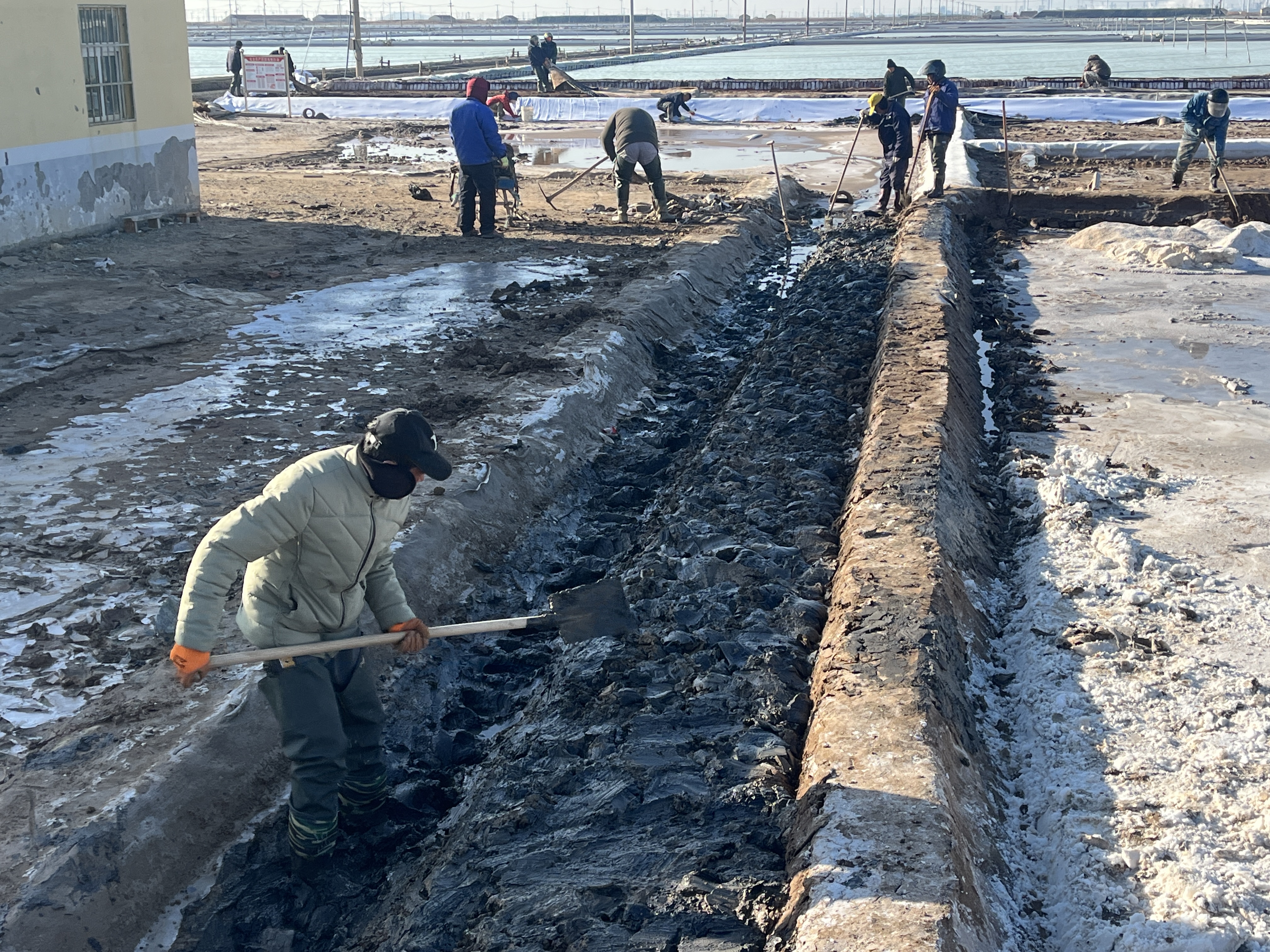 冬季是我們日曬制鹽收儲鹵水、扒土塘、整理灘場文明的最佳時期,也是為2024年工作起好頭,邁好步的關鍵時期,作為重擔我先挑,沖鋒我在前,充分調動一切積極因素,咬定目標,盡最大努力為班組創(chuàng)造良好的工作條件,發(fā)揮每一個班組的最大潛能,確保越冬鹵水除硫率達到95%以上;鹵水接受率100%;長鹽4萬噸;氯化鈉含純96.2%以上;單耗控制在4.2立方/噸以內;硫酸根含量控制在0.35%以下,抓好冬季風性咬制鹵水;安全生產(chǎn)無事故。對任務的完成情況做到每周有安排,每周有總結,確保各項工作按部、有序、穩(wěn)定向前推進。成立“指揮部”掛圖作戰(zhàn),打好冬準戰(zhàn)役:各班組按照標準化、規(guī)范化建設池埝,精心修復結晶池堵頭埝截,修整池埝150余條,1.28萬余米;