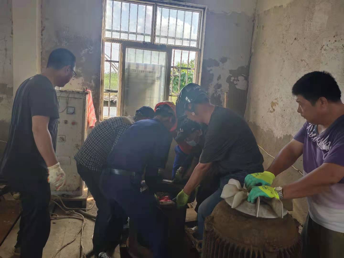 鑒于此次疫情已經迅速波及國內多個省市,防控形勢十分嚴峻。當前又正值海水養殖戶用水高峰,連續多日供水使六圩閘大站5臺155KW軸流泵其中三臺出現故障,小站2臺55KW軸流泵全部發生故障,機泵不能正常運轉。資源管理中心當即召開班子會議,對防疫和修泵工作進行統籌部署,明確分工,壓實責任,積極做好防疫宣傳引導,不留死角;搶修機泵做到安全監護管理到位,確保潮汛來臨之前要維修到位,不誤供水。為了搶時間趕進度,該公司經理江德全多方協調,從兄弟單位借調2名年輕機修工錢明星和楊加棟來協助機修組,并安排六圩閘站全體員工參與。他們頂著機房30多度的高溫加班加點,中午吃著快餐,飯后又立即投入搶修工作中,通過六天的連續奮戰,機器全部維修到位,保證了泵站及時供水。(資源管理中心宣)