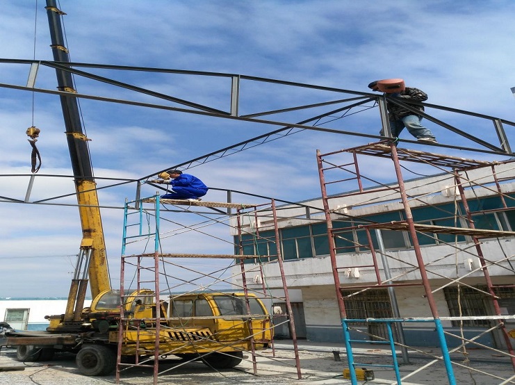 自4月初承接我場(chǎng)中二圩愛(ài)心市場(chǎng)大棚制作任務(wù)后,機(jī)電服務(wù)公司班子認(rèn)真進(jìn)行研究制作方案,購(gòu)買(mǎi)優(yōu)質(zhì)材料,合理安排技術(shù)人員進(jìn)行制作,做到多頭并進(jìn),加班加點(diǎn),勞模王緒華、星級(jí)員工程洪連身先士卒,其他員工積極參與,到4月19日,全面、安全完成制作安裝任務(wù)。(圖為現(xiàn)場(chǎng)施工中)(胡亞?wèn)|)