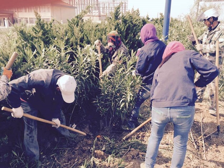 南翼綠化工人移植苗木