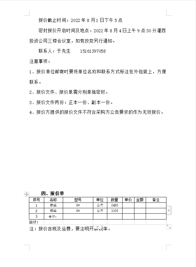鐵絲、鋼絲采購(gòu)公告