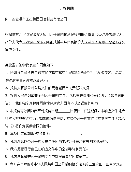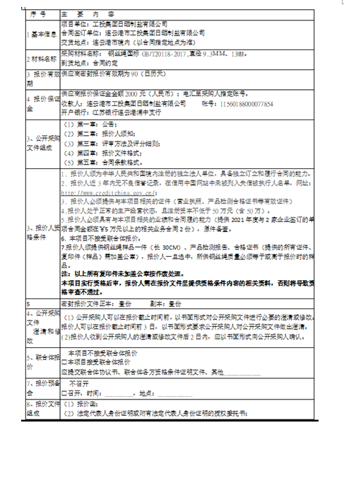連云港市工投集團日曬制鹽有限公司鋼絲繩采購項目