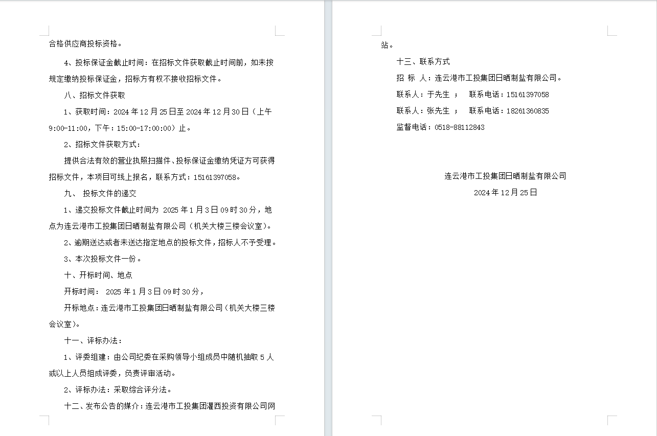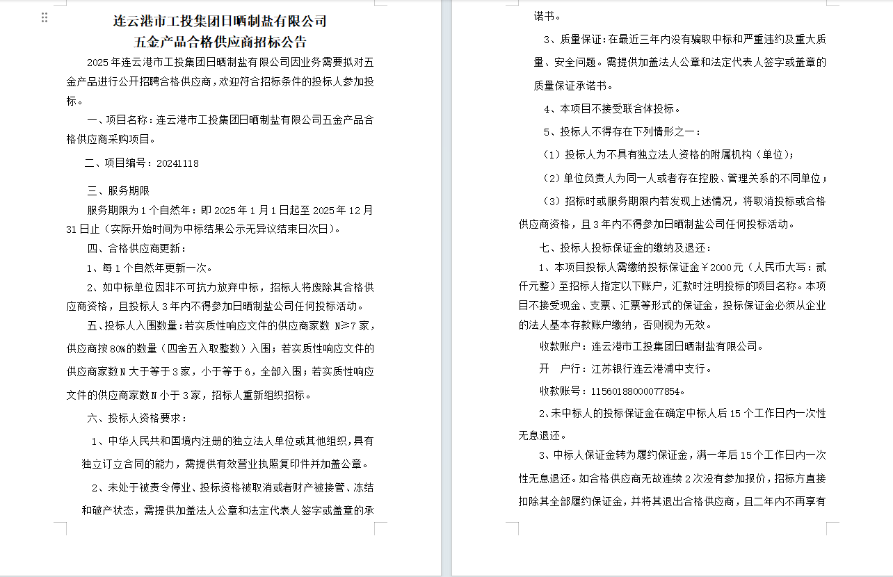 連云港市工投集團日曬制鹽有限公司五金產(chǎn)品合格供應(yīng)商招標公告