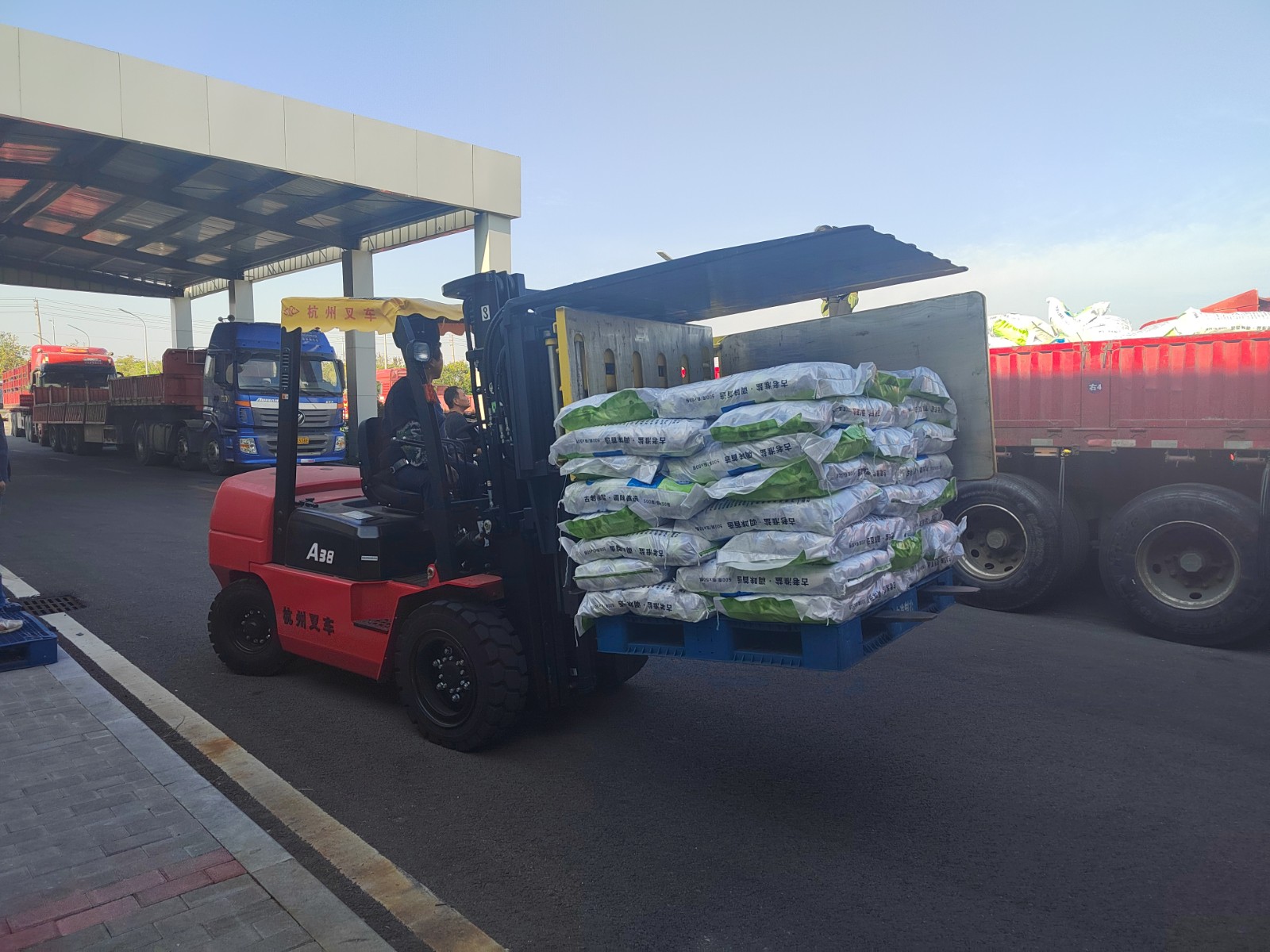 公司進入“大干100天,沖刺雙二零”關鍵階段,裝車量激增,一輛輛卡車在廠區內排隊待裝。時間緊,任務重,面對巨大的裝車壓力,裝卸班組充分利用旋轉叉車特性,開展分區分組裝車作業,極大減少了人力成本和勞動強度,提高了工作效率,為確保裝車任務的順利完成提供有力保障。(徐丹丹)